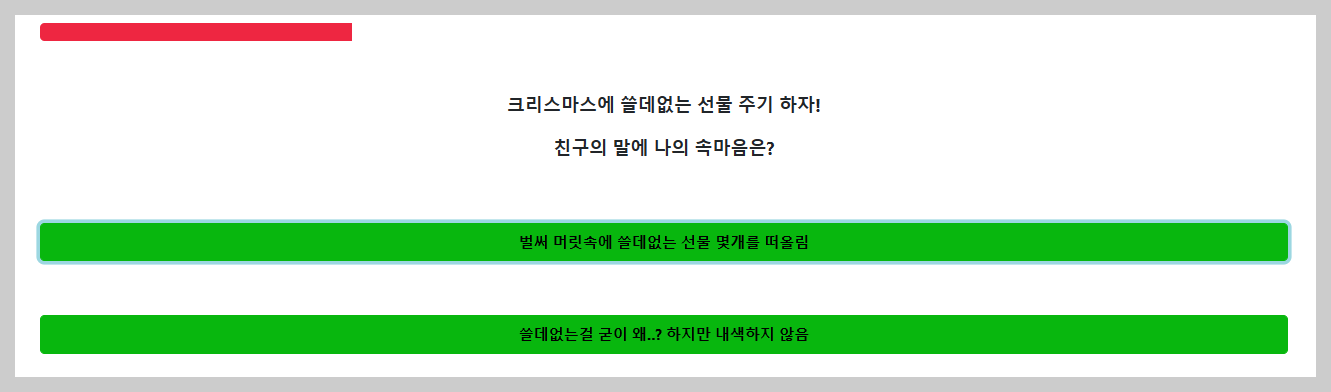 세 번째 문제 "크리스마스에 쓸데없는 선물 주기 하자!, 친구의 말에 나의 속마음은?"
