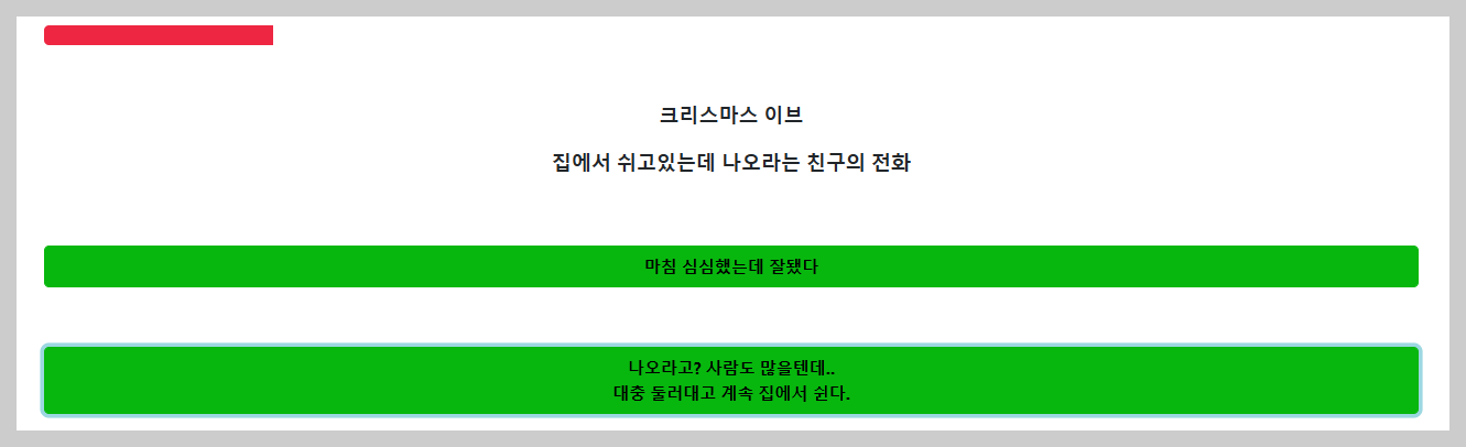 두 번쨰 문제! "크리스마스 이브, 집에서 쉬고있는데 나오라는 친구의 전화" 나는 어떻게 할까?