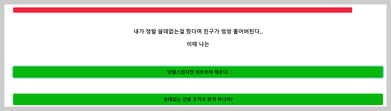 열한 번째 문제, "내가 정말 쓸데없는걸 줬다며 친구가 엉엉 울어버린다... 이때 나는"